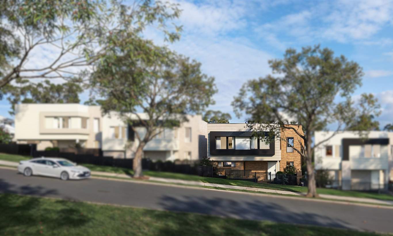 A Laneway Townhouse design that boasts a generous ground floor living area that opens out to a private northerly courtyard. A ground floor bedroom suit allows promotes single level living and passive connections to the front courtyard.  The upper floor accommodates additional bedrooms and second multi-purpose living area capturing vistas of the surrounding area.  A double garage is conveniently accessed off the laneway with adjoining functional utility areas.